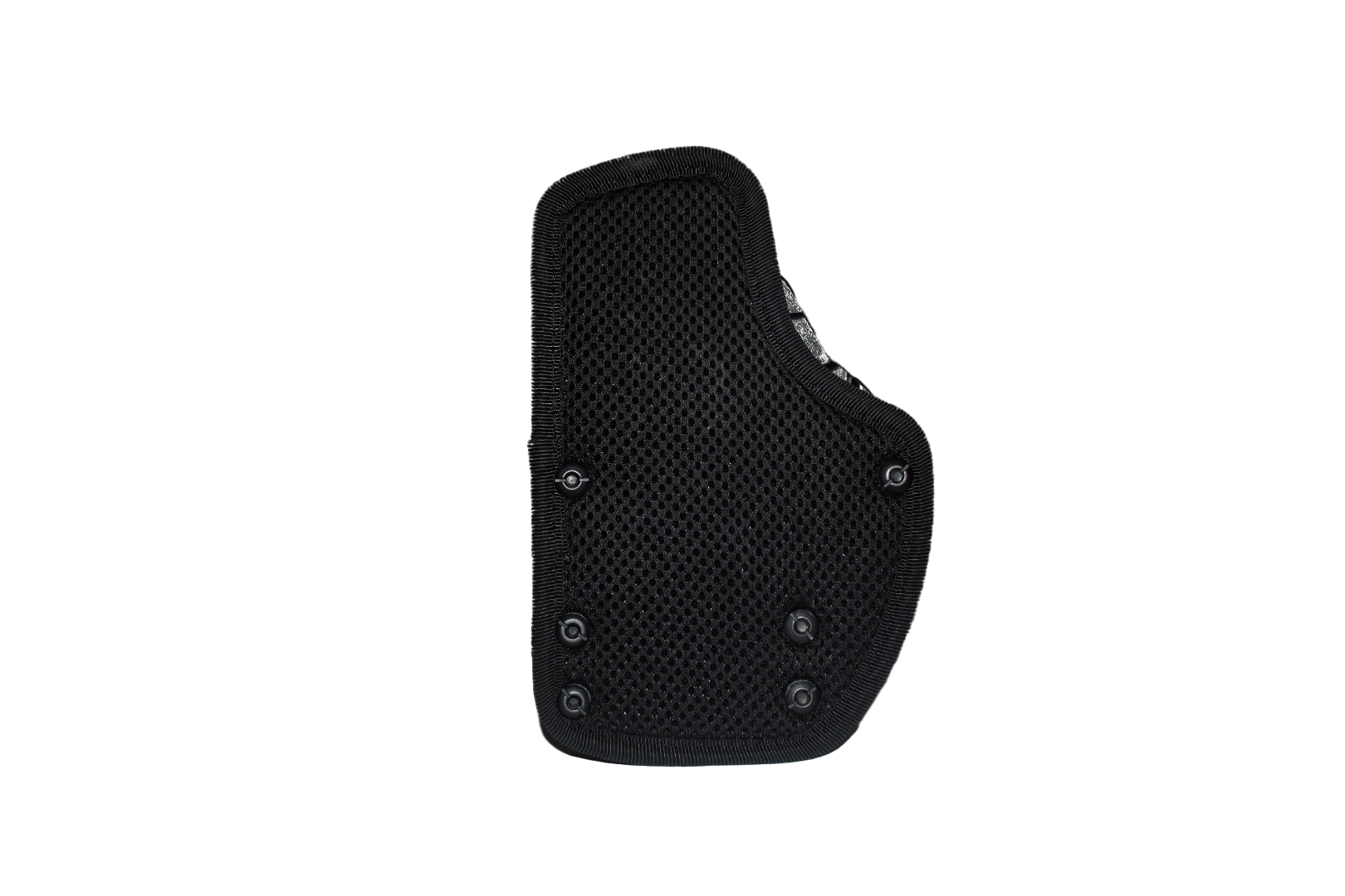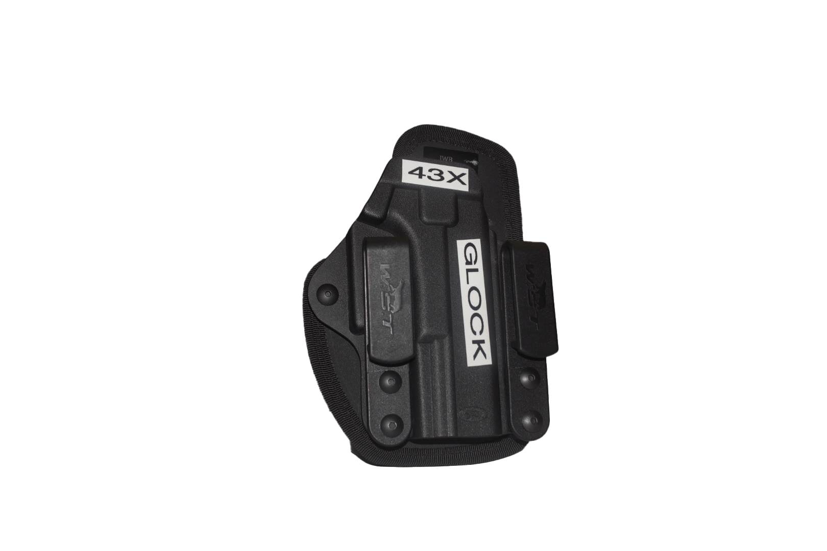 Advanced holster with a double hinge system for flexibility and body contouring.